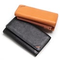最近はスマートフォンでの電子マネーや会員アプリが普及してお財布の中身が減ってきました。必要になるのは緊急時の数枚のお札とアプリ化できないカード。シビラのフタもマチもない薄長財布はそんな状況にピッタリで愛用しています。この薄長財布は革が特徴的で、柔らかな牛革にロウ引き加工。一見グレーに見えますが革の色はブラックです。使ううちにロウが取れる変化も楽しめます。